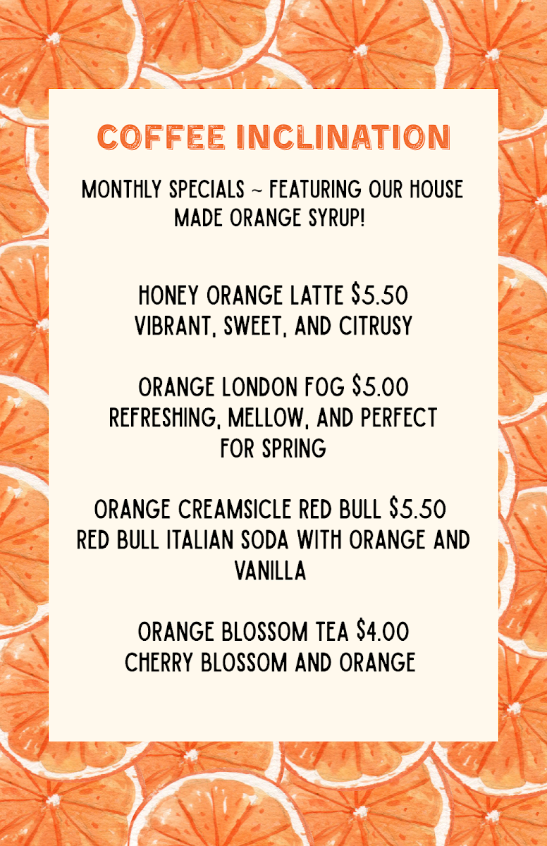 The menu at Coffee Inclination is a treasure trove of flavors. You can indulge in expertly crafted drinks, including iced lattes that strike the perfect balance in sweetness. Their unique offerings, such as Red Bull Italian sodas, add a fun twist to the classic menu. Each drink is tailored to your liking, showcasing the staff's commitment to customer satisfaction.